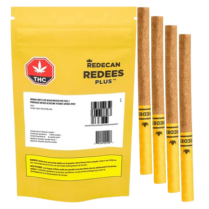 Twice the beast, double the bite. Animal RNTZ Redees Plus Live Resin Infused Pre-Rolls takes our legendary Animal Cookies x Rntz indica and supercharges it with pure Animal RNTZ live resin, packed into our iconic Redees for a next-level smoking experience. Rolled into 4 x 0.5g straight-cut pre-rolls, these ultra-potent hitters are rolled right making them clock in at a ferocious 42-50% THC, delivering true-to-strain flavours and effects in every perfectly packed puff.